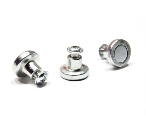 Магнитный крепеж состоит из двух частей: металлическая основа в Т-образном виде в тонкой части. В самой основе присутствует резьба для крепёжного болта. В широкой части основания располагается магнит в виде шайбы.